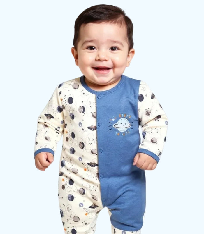 A stylish white printed romper, made in Thailand from cotton blended stuff—super soft and gently crafted for sensitive skin, ensuring comfort, breathability, and all-day charm.