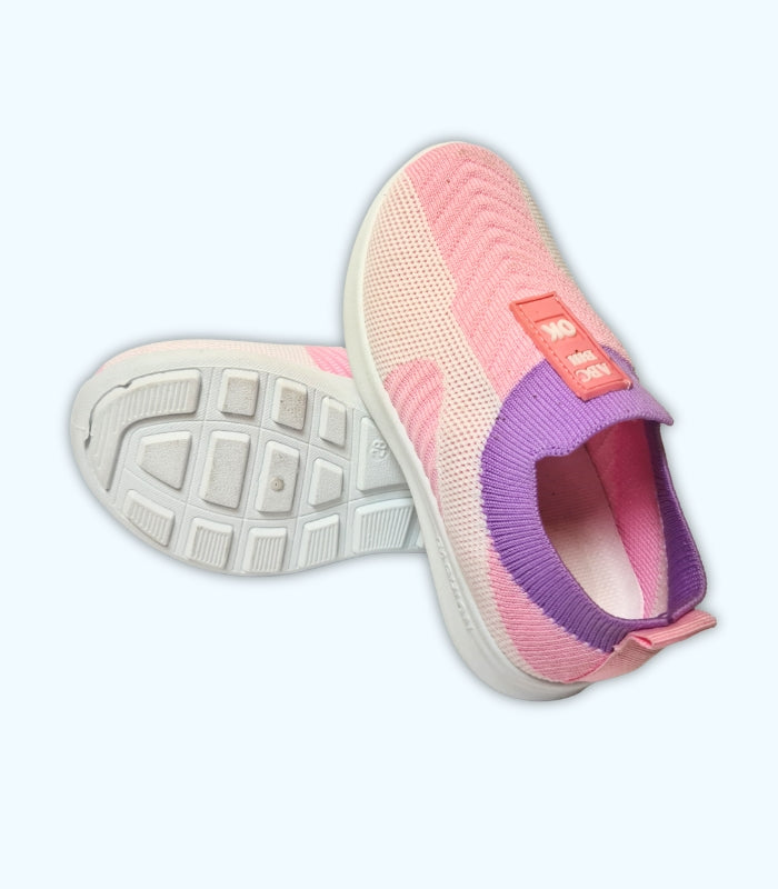 Breathable stretch-knit upper with a soft elastic collar for easy slip-on wear and a snug, comfortable fit. Lightweight cushioned sole and flexible outsole provide shock absorption and everyday grip for active little feet.